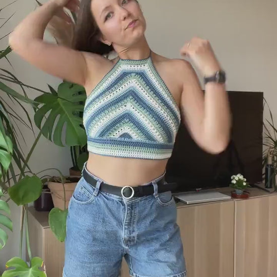Learn how to make a trapezium crochet crop top in this beginner friendly pattern. Within this pattern you will learn how to do a lot of crochet stitches as well as useful tips and tricks.